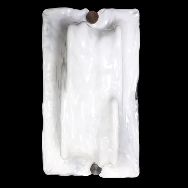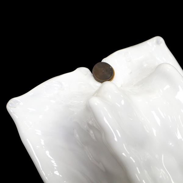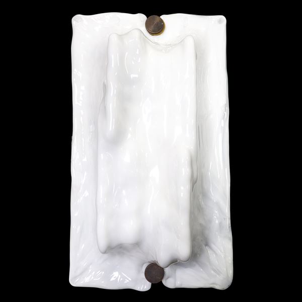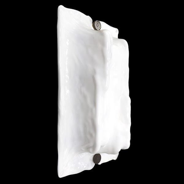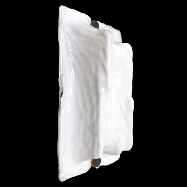 Coppia di appliques modello "Zest" in vetro soffiato sagomato a mano con rilievi e vetro bianco lattimo, anni '60
