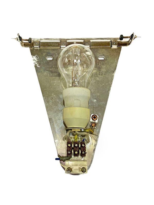 Lampada da muro Venini in vetro di Murano lattimo, disegno Tina Aufiero, 1986