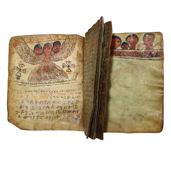 Antichissimo piccolo libro di carattere religioso in pergamena manoscritto in lingua copto ge'ez etiopica