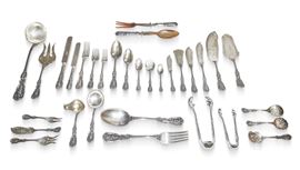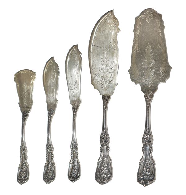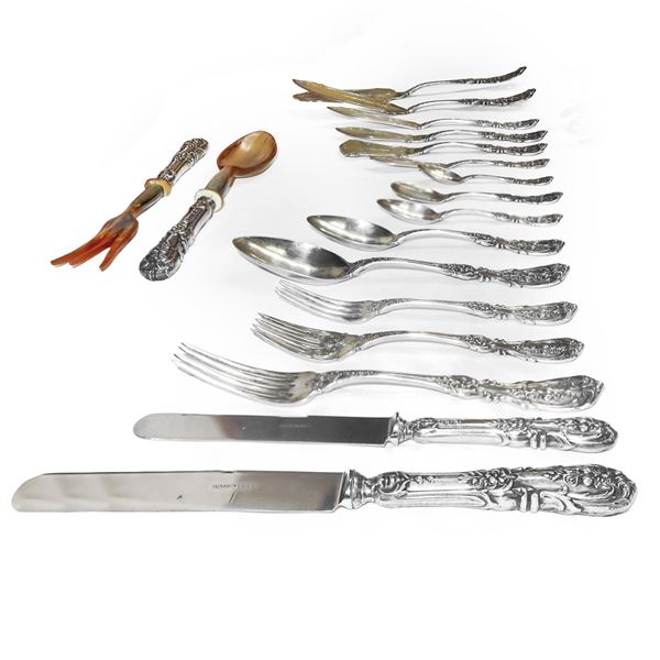 Importante e completissimo Servizio di posate in argento da 12 modello " Quirinale", Manifattura CESA, con manico stile floreale a rilievo., Alessandria