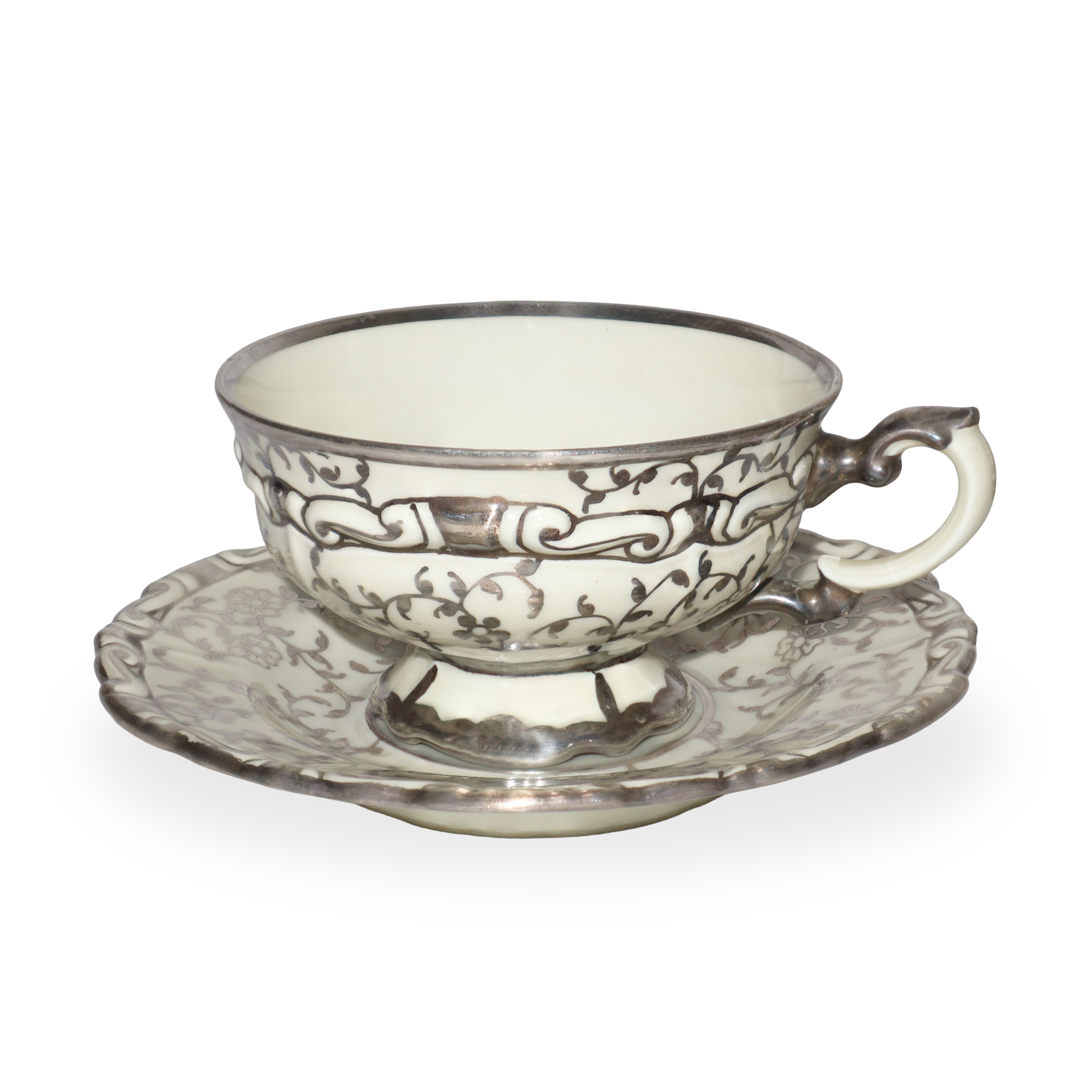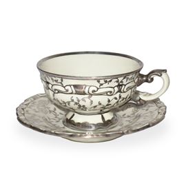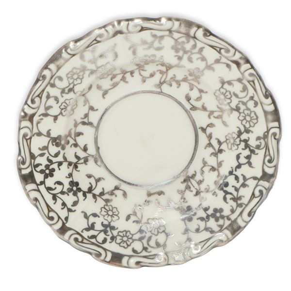 Servizio da tè da 12 decorato a mano con motivi floreali e profili in argento in stile barocco