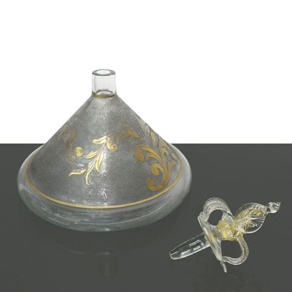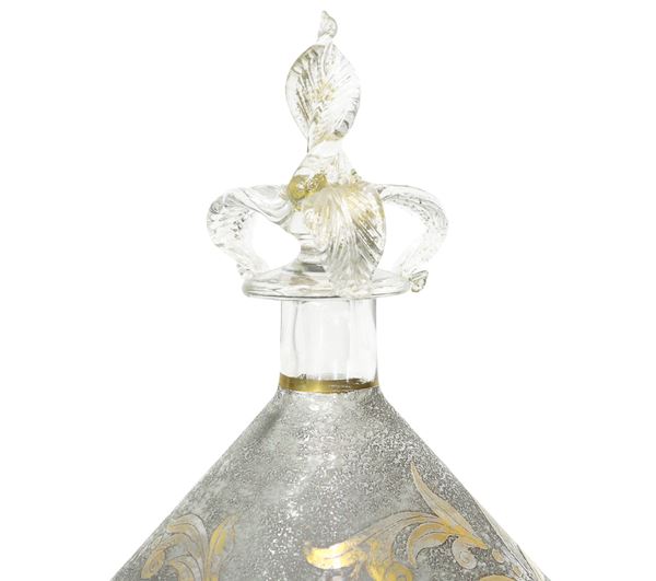 Bottiglia in vetro soffiato di Murano con decori in oro, XX secolo