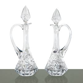 Coppia di bottiglie in cristallo di Boemia molato e intagliato