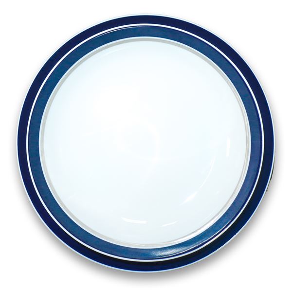 Servizio di piatti da 12 bianco con perfilo argentato e blu