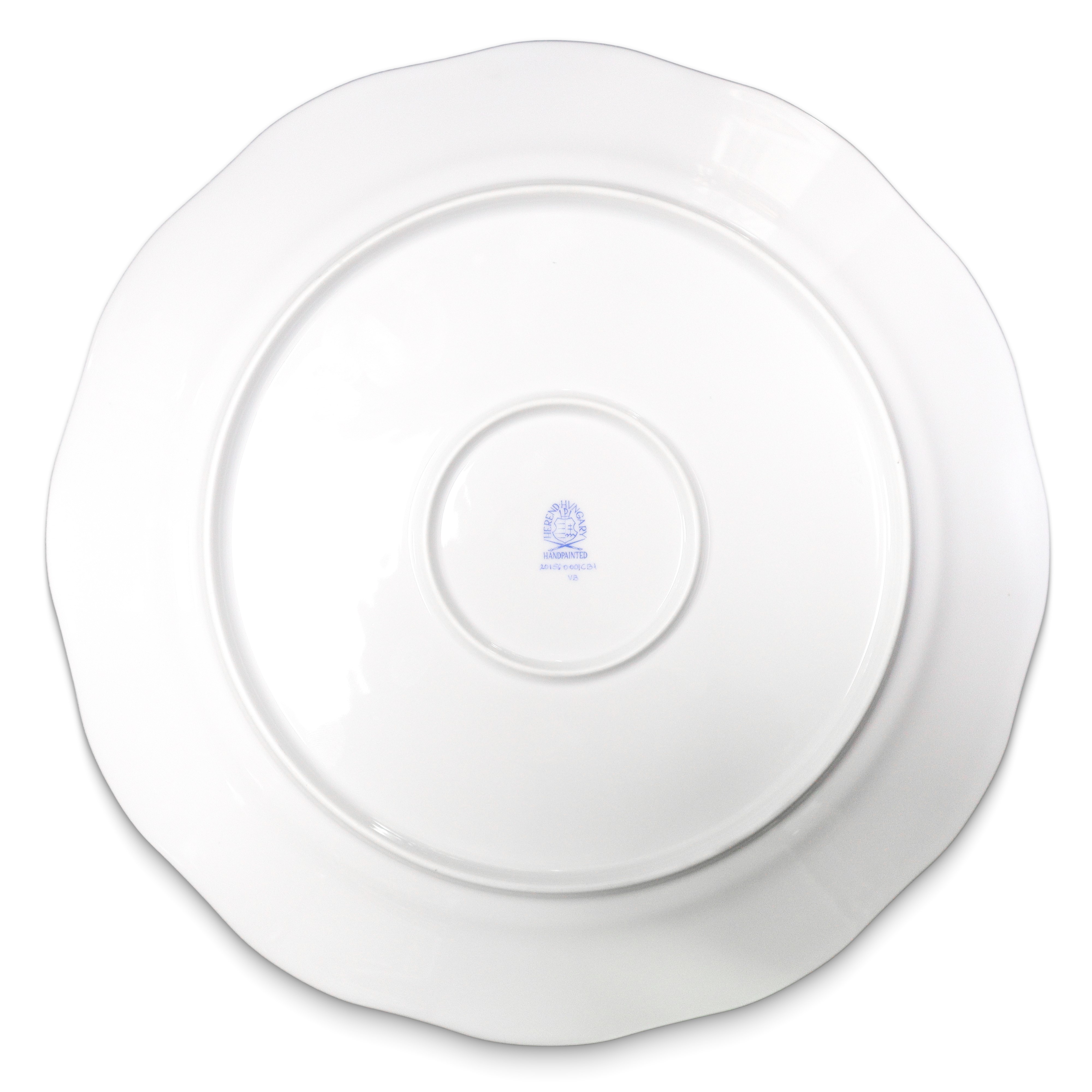 Composto da 104 pezzi: 12 Sottopiatti, 24 piatti piani, 12 piatti fondi, 24 piatti da frutta, una insalatiera, 1 piatti ovale da portata, 1 piatto da portata circolare, 2 piatti foglia da portata, 1 caffettiera, 1 zucchiera, 1 lattiera, 12 tazze da caffè con piattino, 12 tazza da tè con piattino,