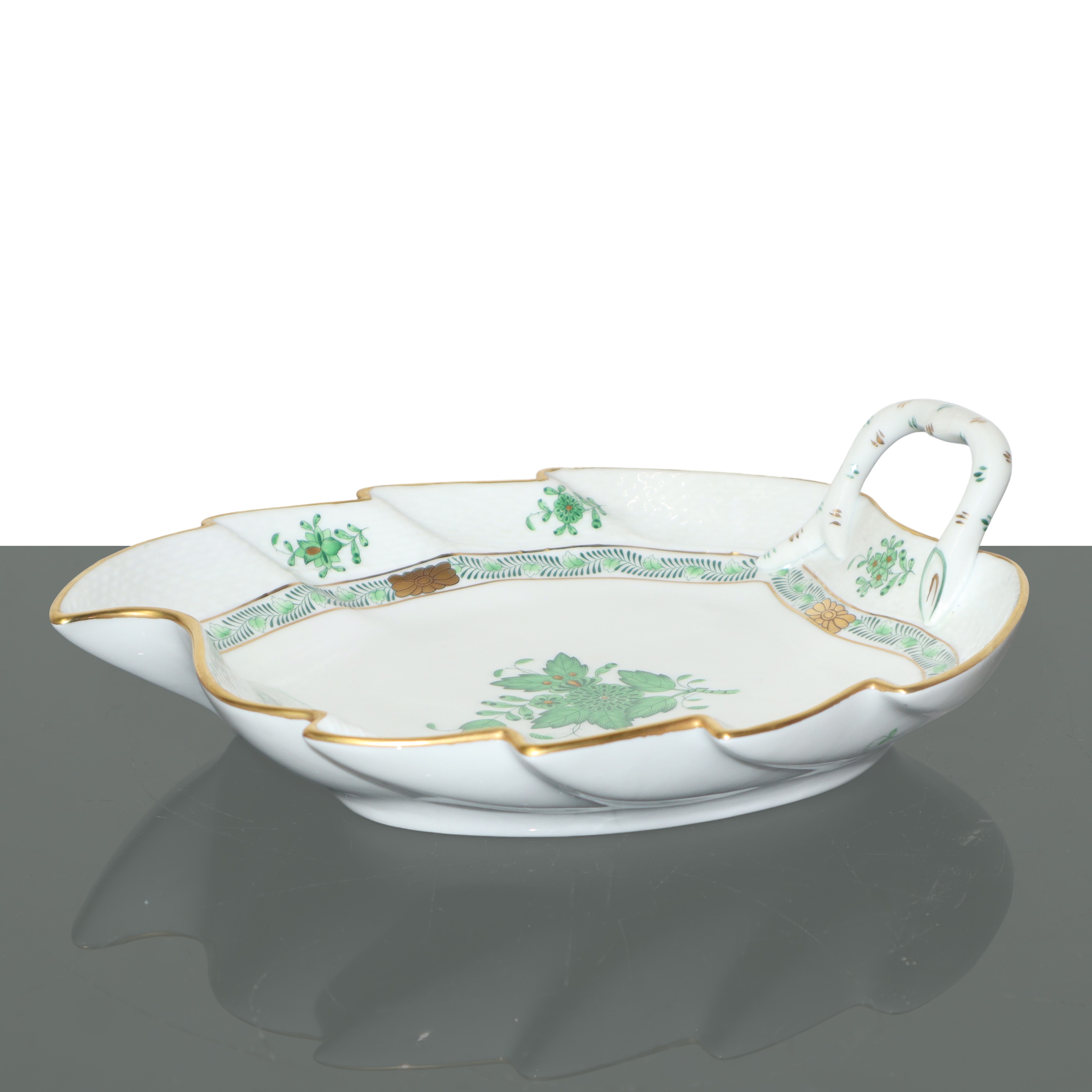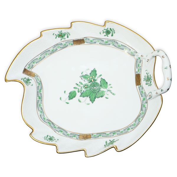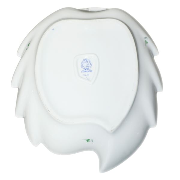 Foglia in porcellana bianca Herend decoro Apponyi verde