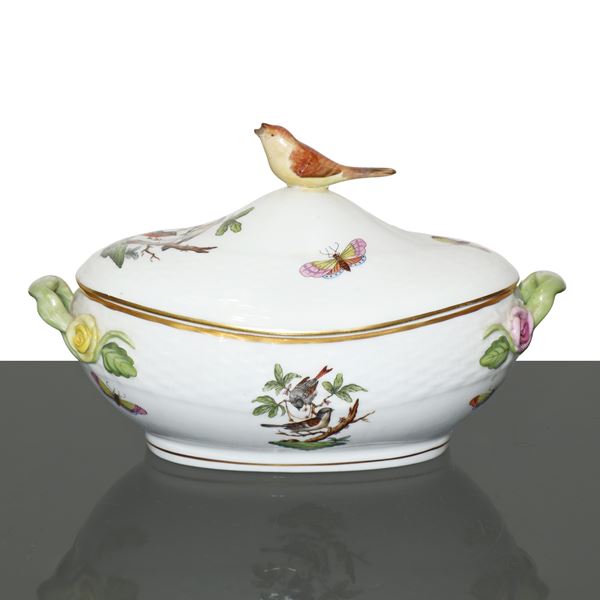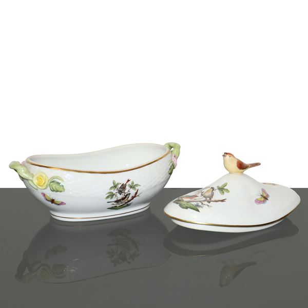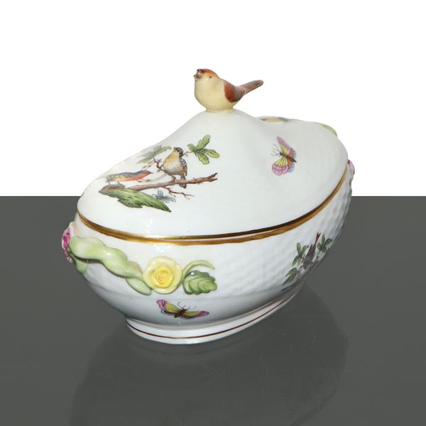 Portacioccolattini in porcellana bianca Herend serie Rothschild, con presa a guisa di uccellino