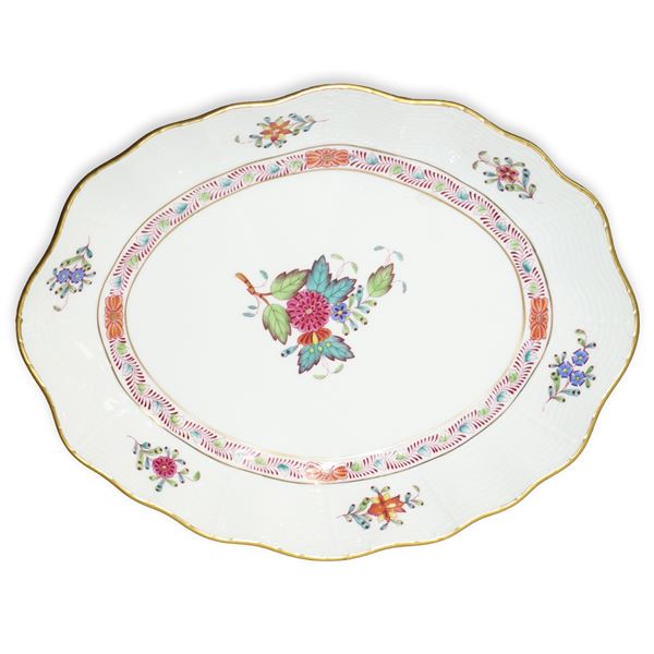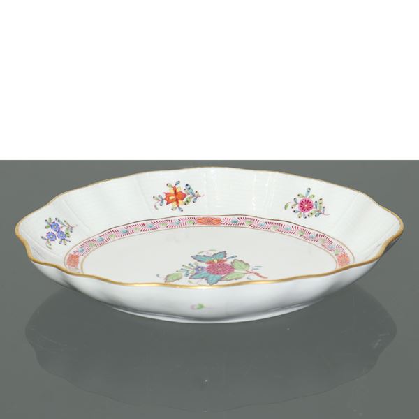 Vassoio in porcellana bianca Herend, decoro Indian Basket Multicolor, XX secolo