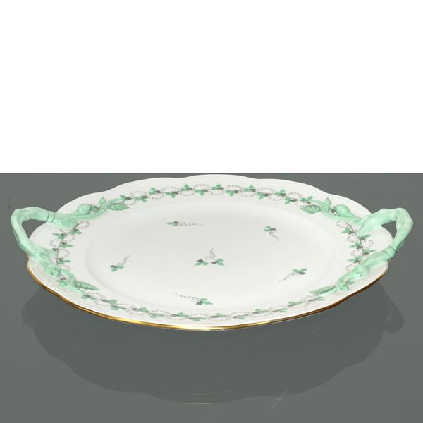 Vassoio rotondo con decoro Apponyi sui toni del verde