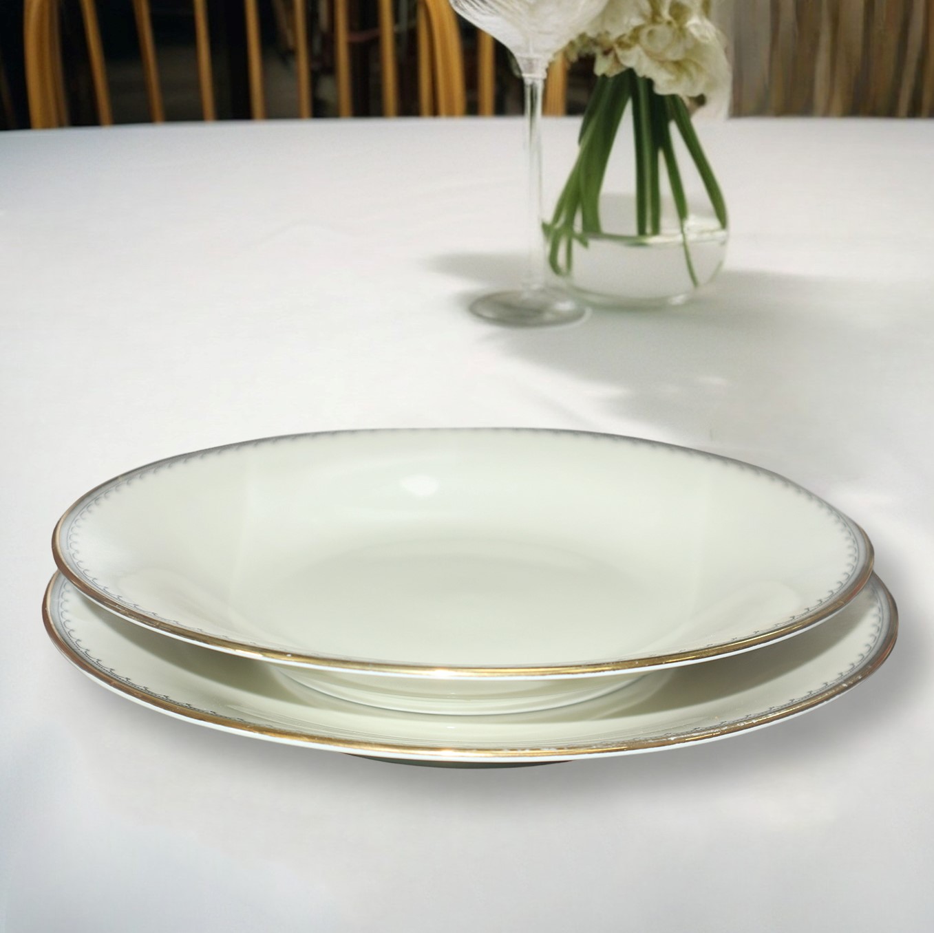 Servizio di piatti da 11 in porcellana bianca con decori dorati e blu