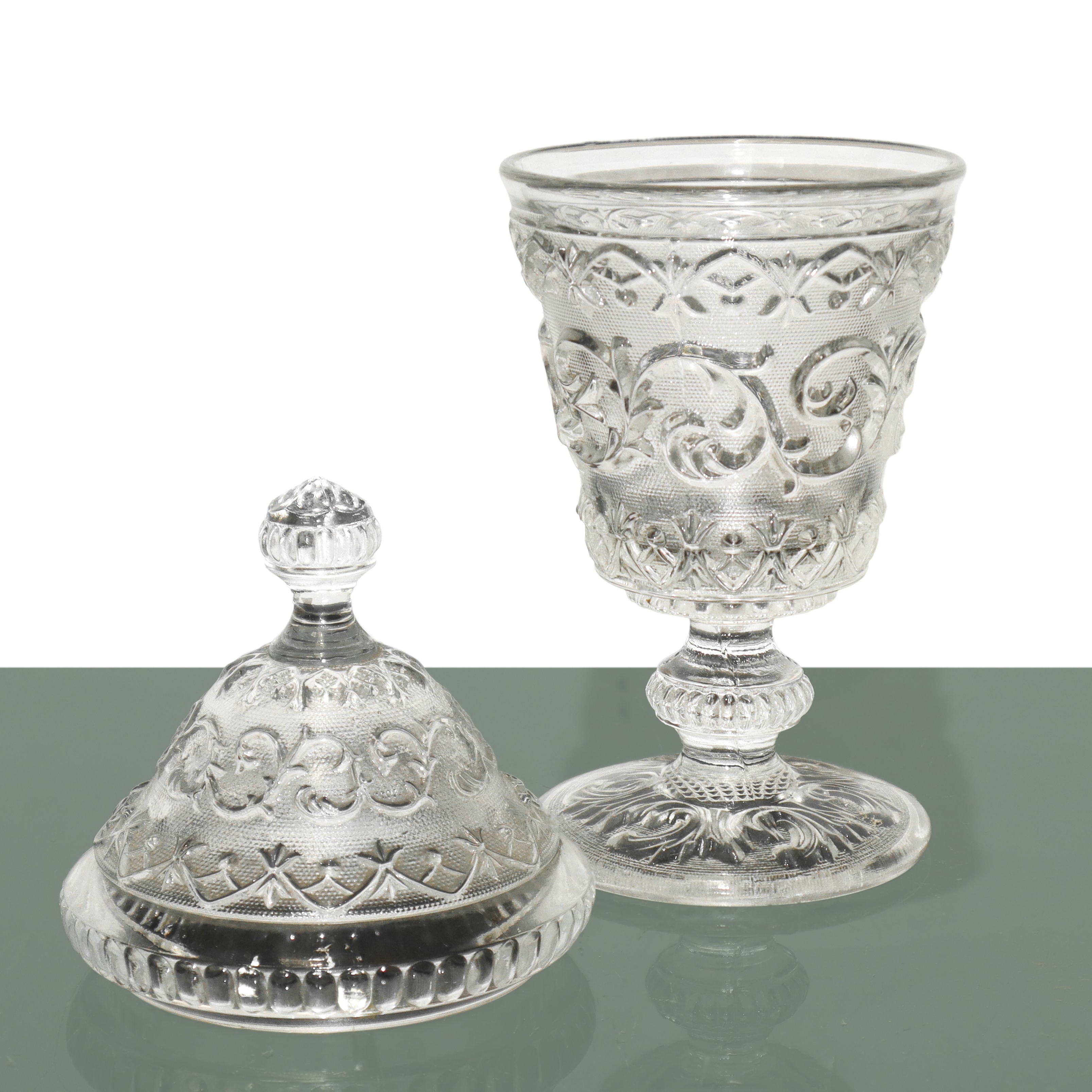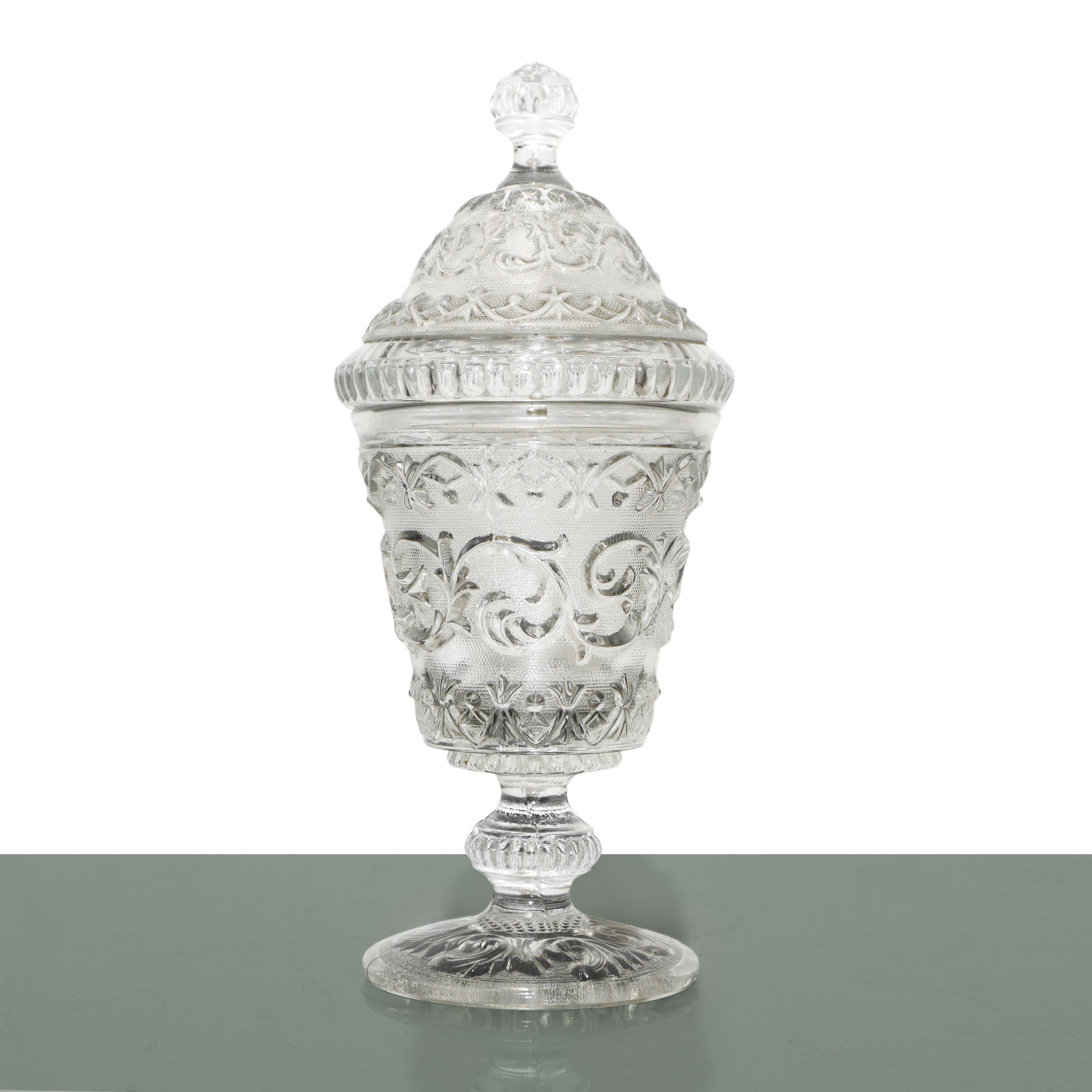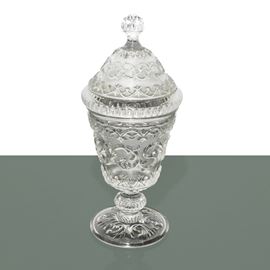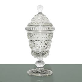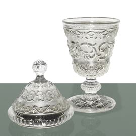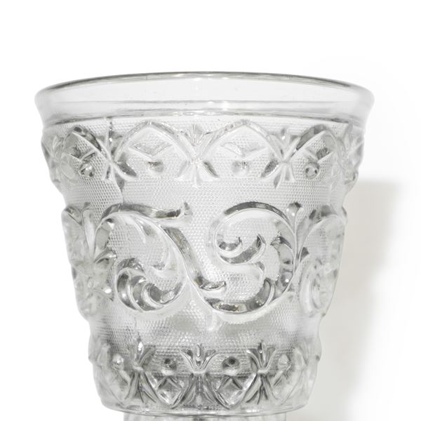 Poutiche in vetro bulinata e intagliata a motivi floreali