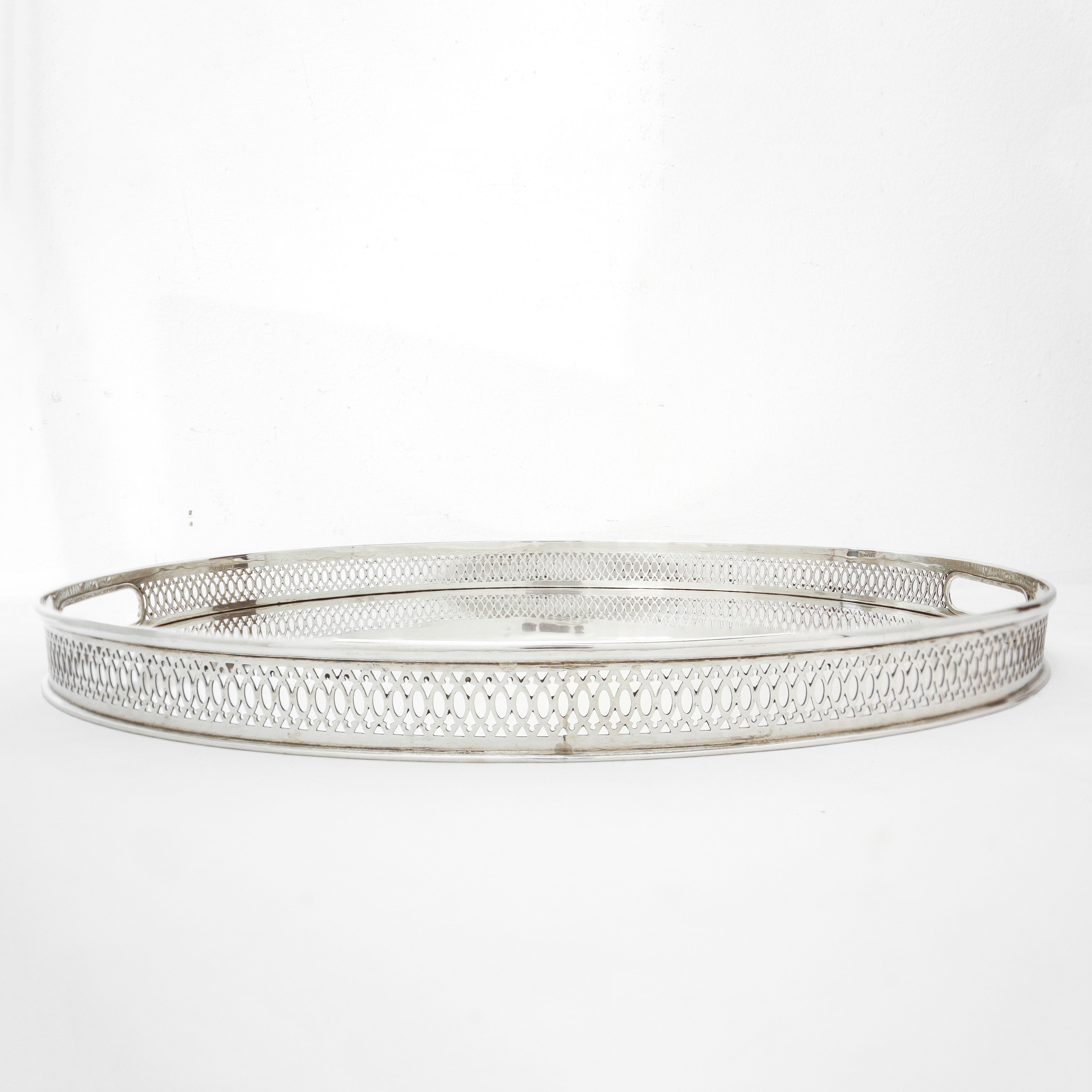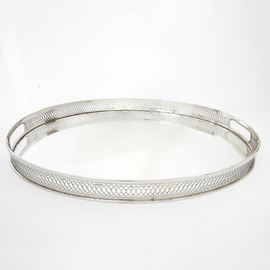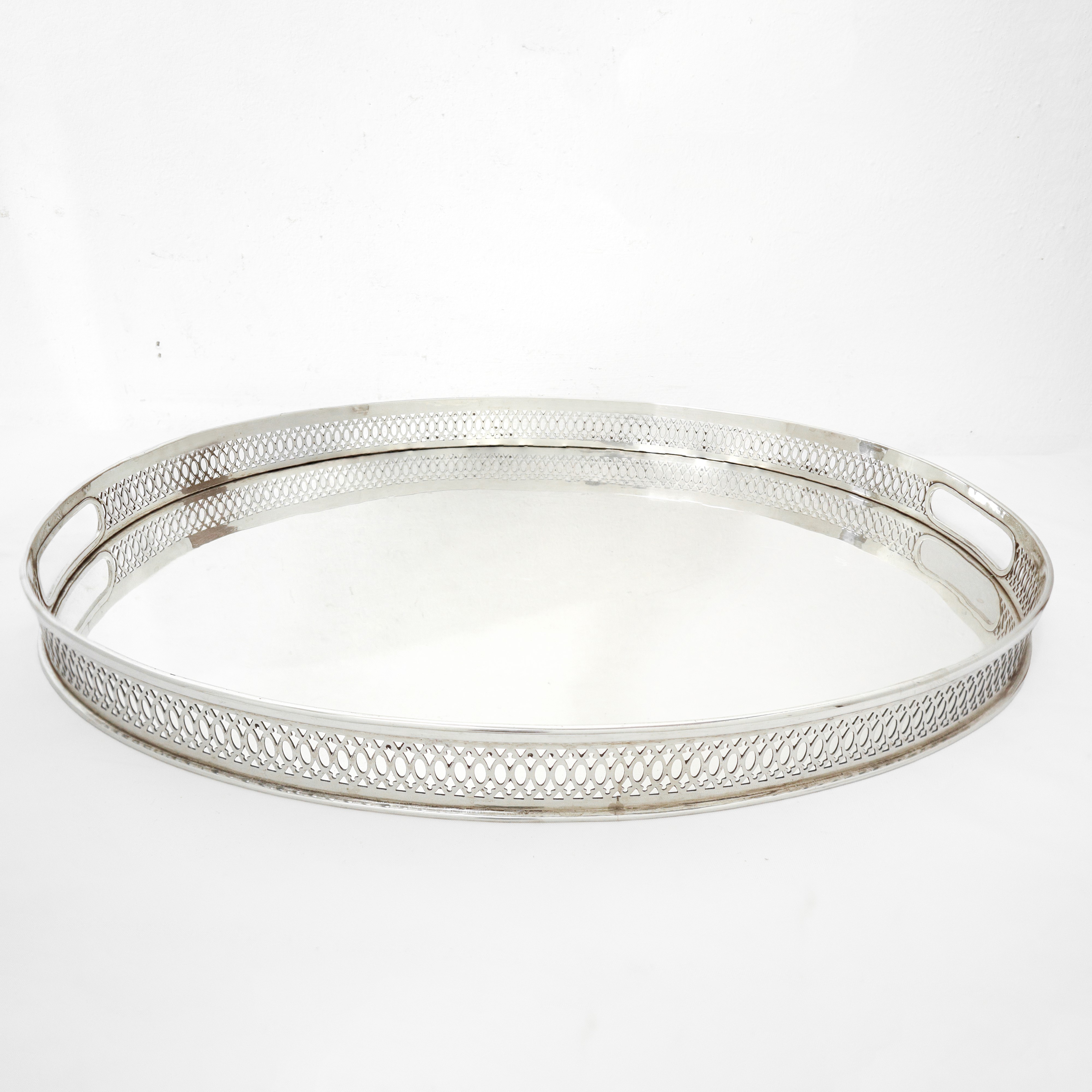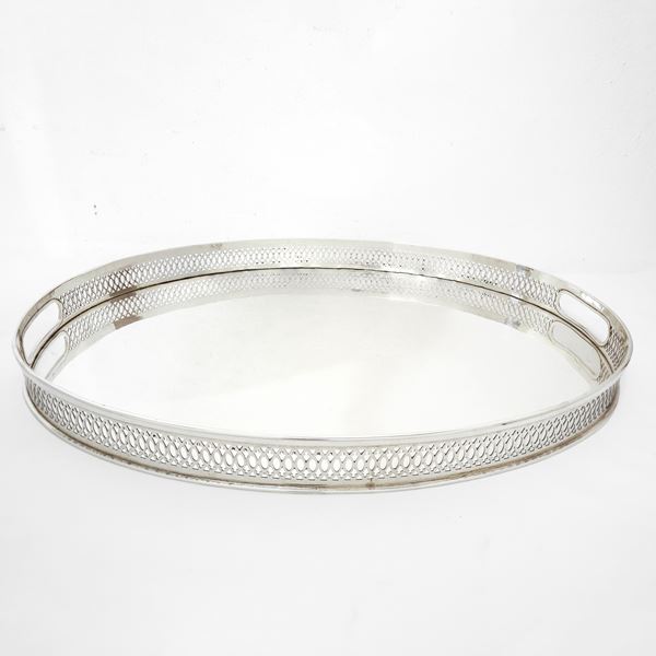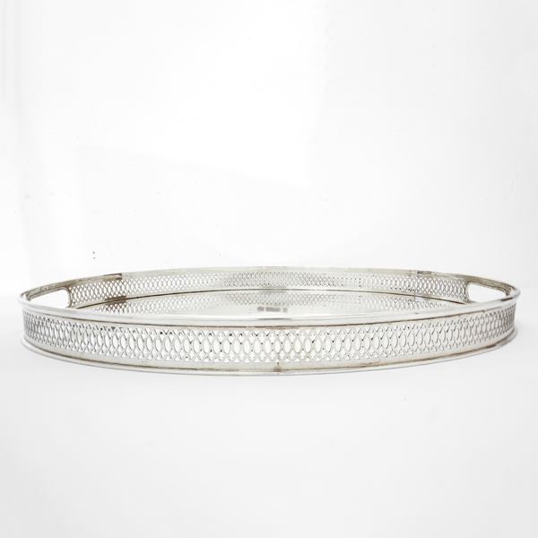 Vassoio ovale in argento 800 con bordo a ringhierina