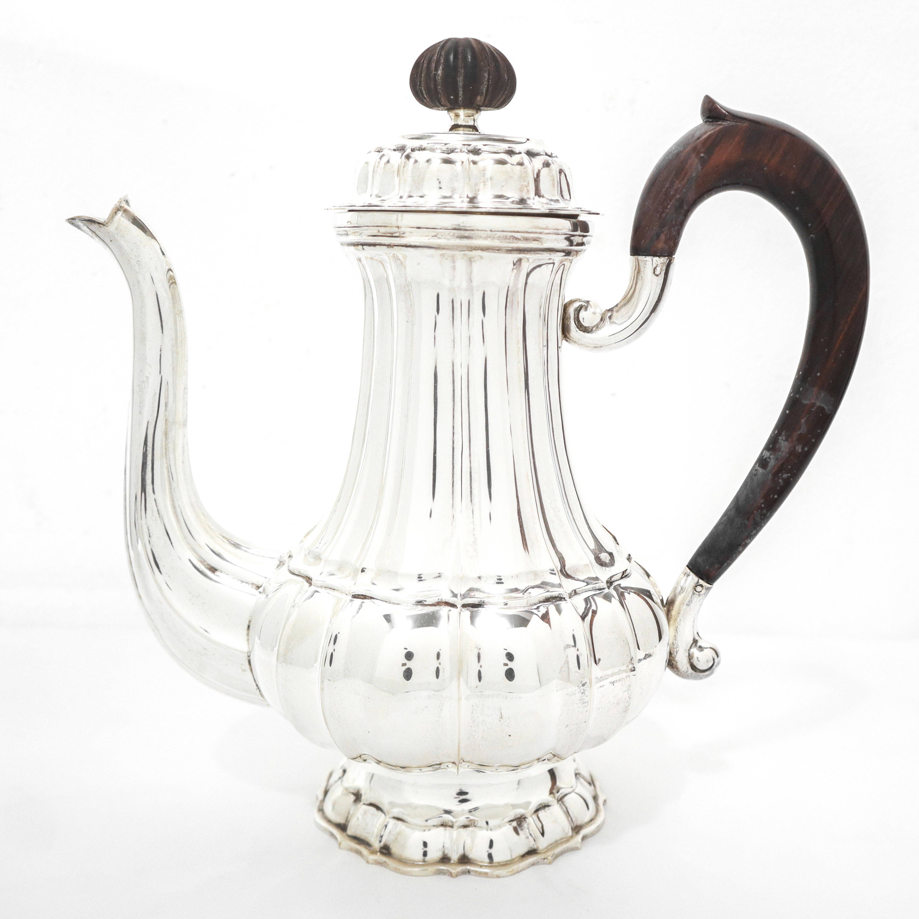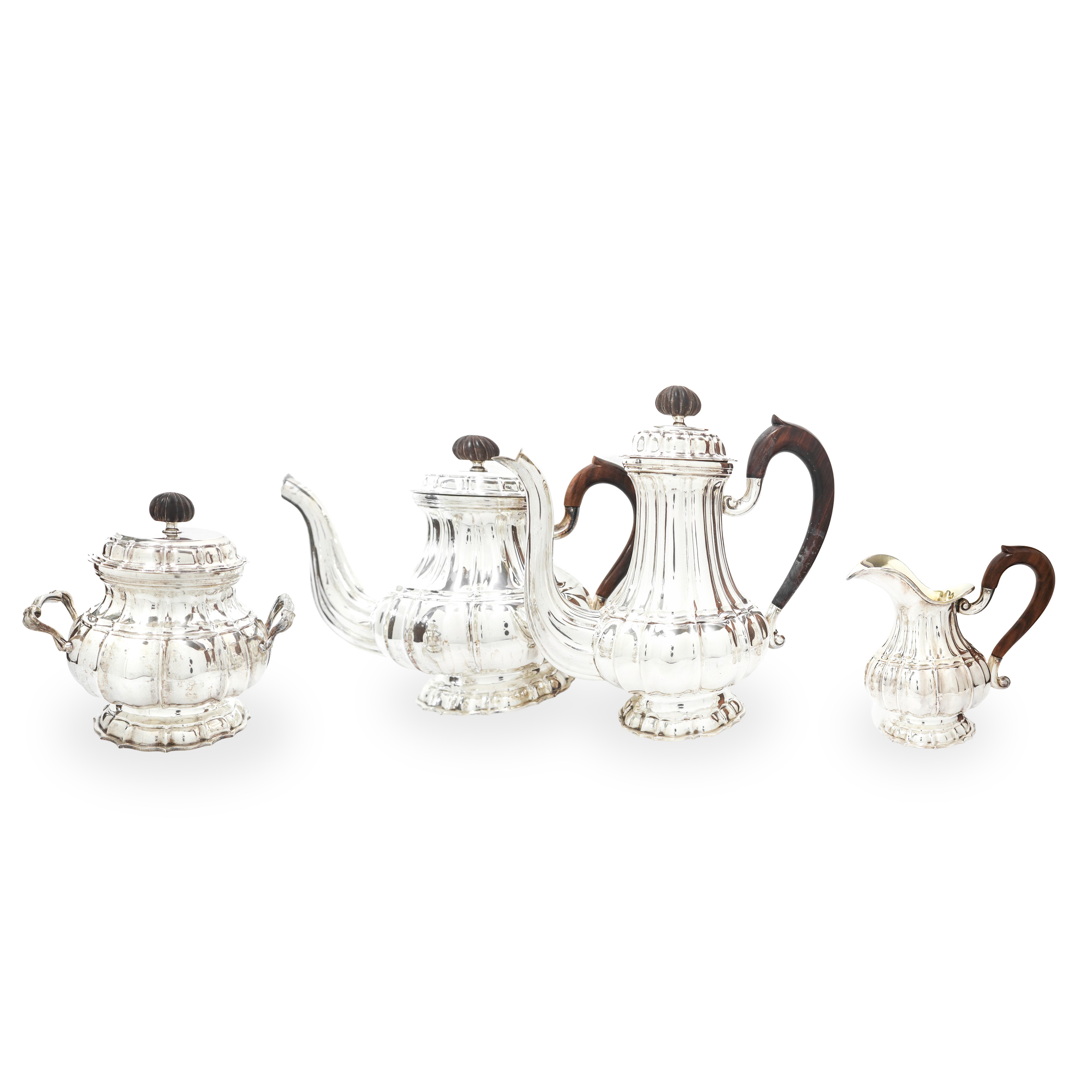 Servizio composto da: teiera, caffettiera, lattiera, zuccheriera. Punzone 800 su ciascun pezzo.