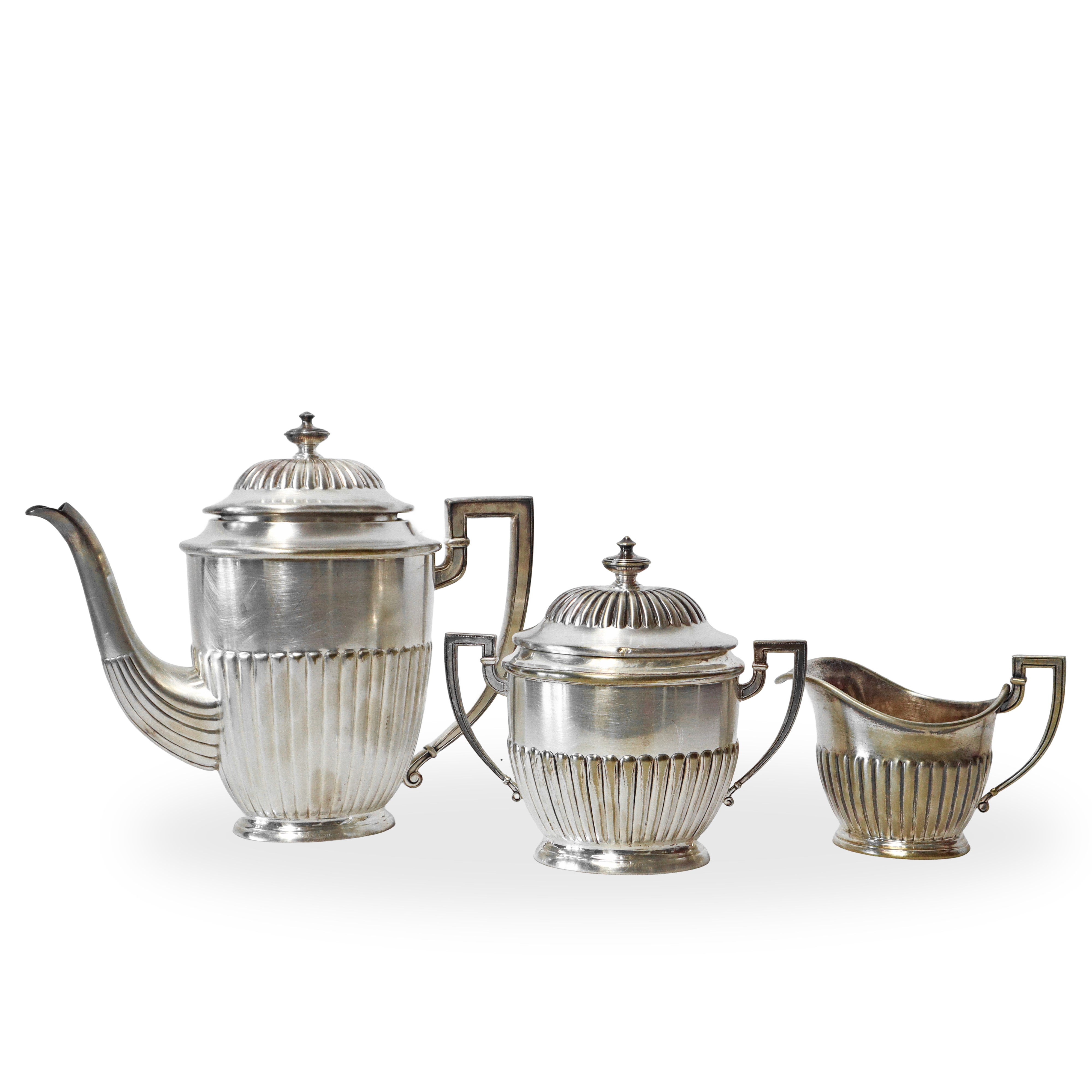 Servizio da tè in sheffield composto da: teiera, zuccheriera e lattiera