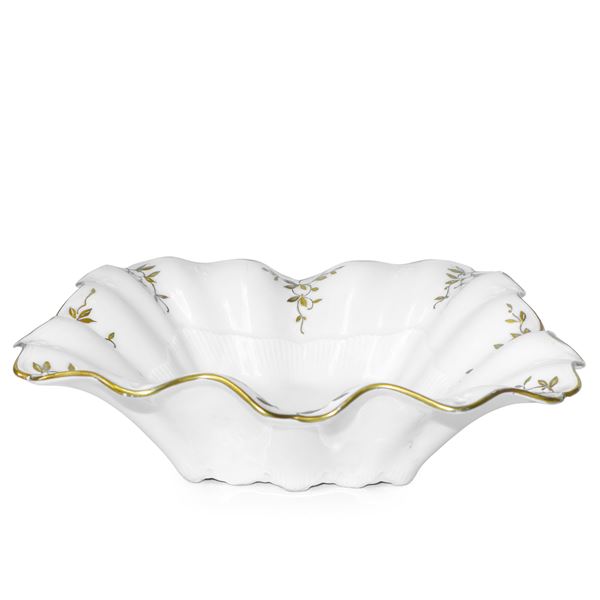 Servizio di piatti da 12 bianco con perfilo dorato e decoro a foglie dorato
