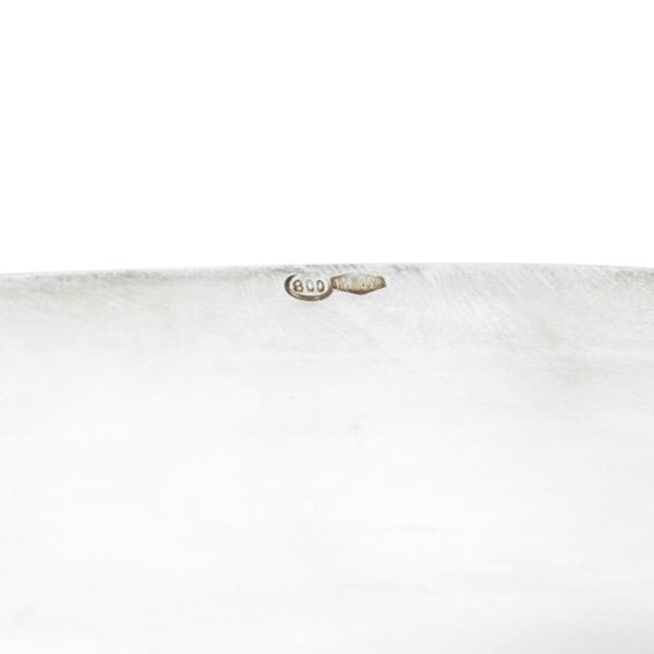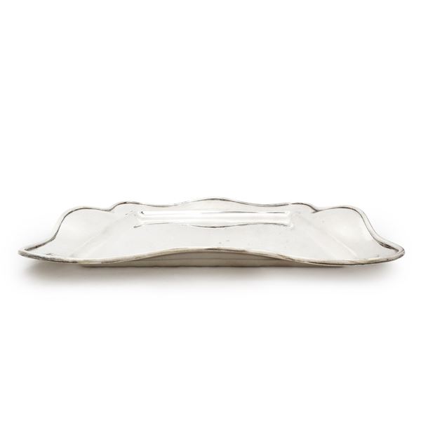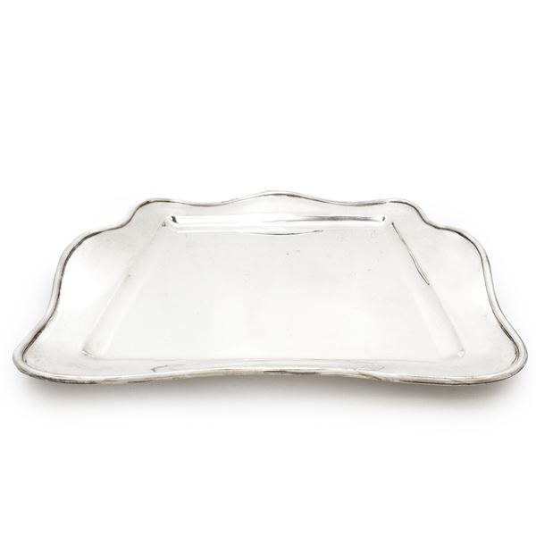 Vassoio quadrato con bordo smerlato in argento 800