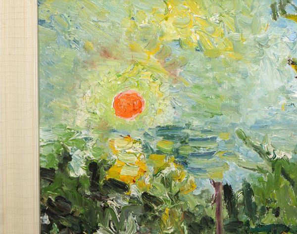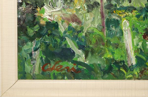 Firmato in basso a sinistra. Firma al retro e N. repertorio. Timbro Galleria La Barcaccia, Roma