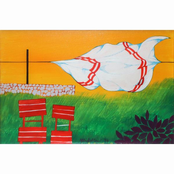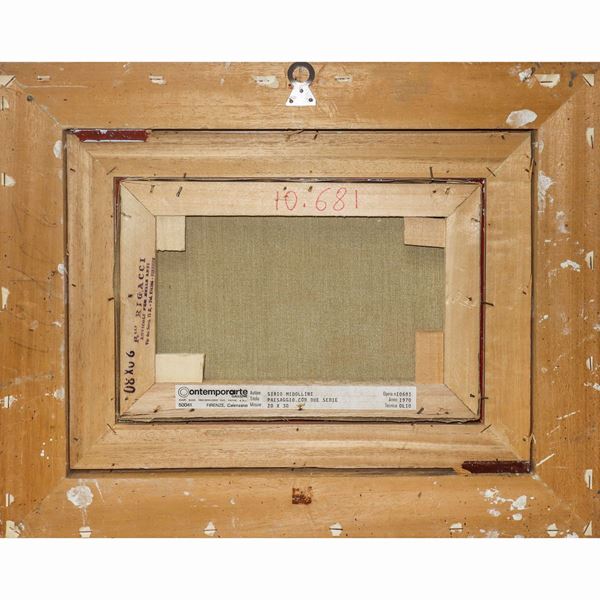 Firmato sul fronte in basso a centro e datato '70. Sul retro timbro della galleria "Contempoarte Cadenzano Firenze", e timbro Fratelli Rigacci. Certificato e firmato su foto.