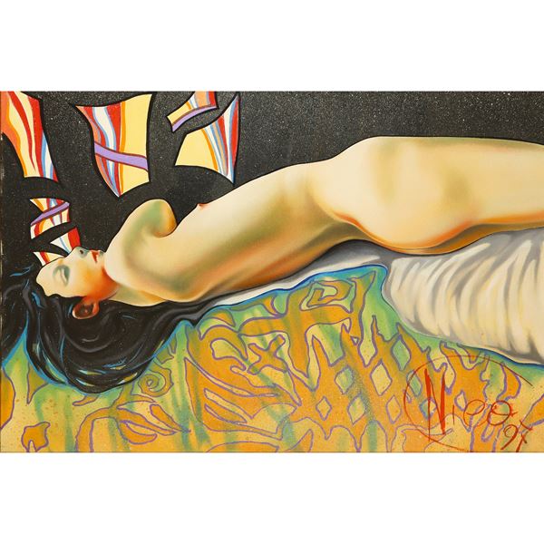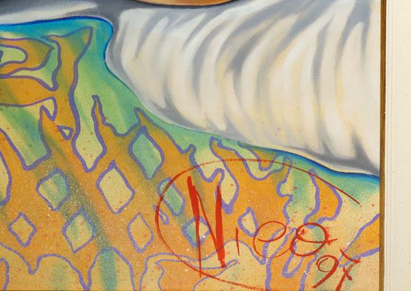 Firmato, datato e titolato al retro. Autentica dell'artista su fotografia. Nico Pladini esponente del movimento metropolismo.