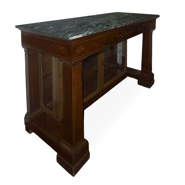 Consolle Carlo X con vetrina alla base e marmo al piano, Sicilia XIX secolo