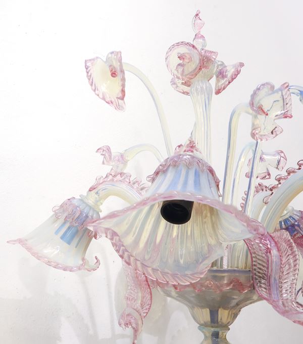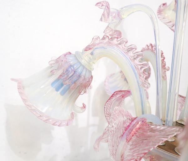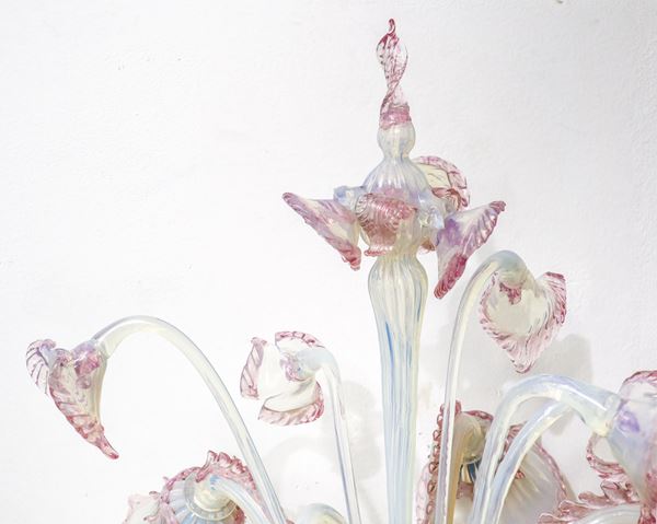 Flambeau in vetro di Murano nei toni del rosa e del lilla, XIX/XX secolo