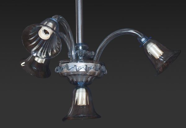 Lampadario a 4 luci in vetro di Murano azzurro