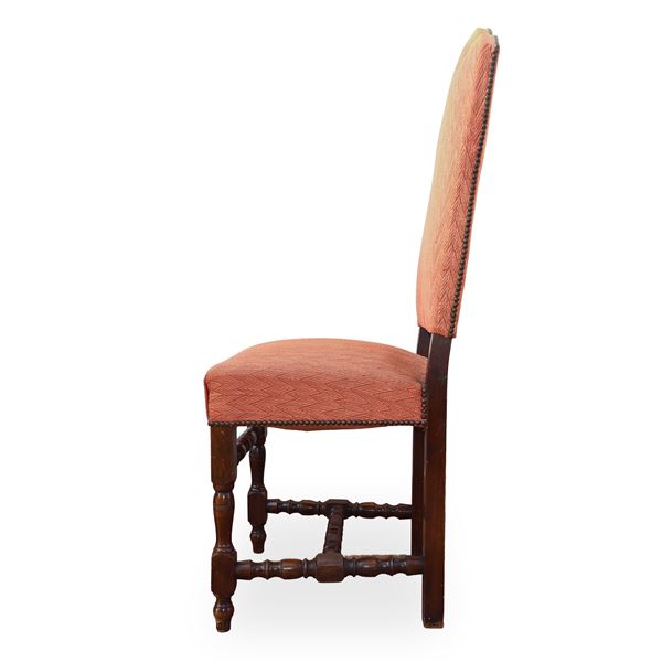N°8 Seggioloni Luigi XIV con piedi a rocchetto e spalliera sagomata e tappezzeria rossa