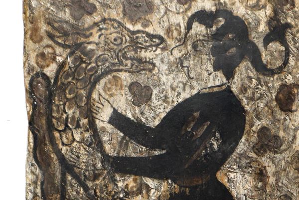 Placca Socarrat Valenziano in argilla cotta raffigurante Uomo con grifone