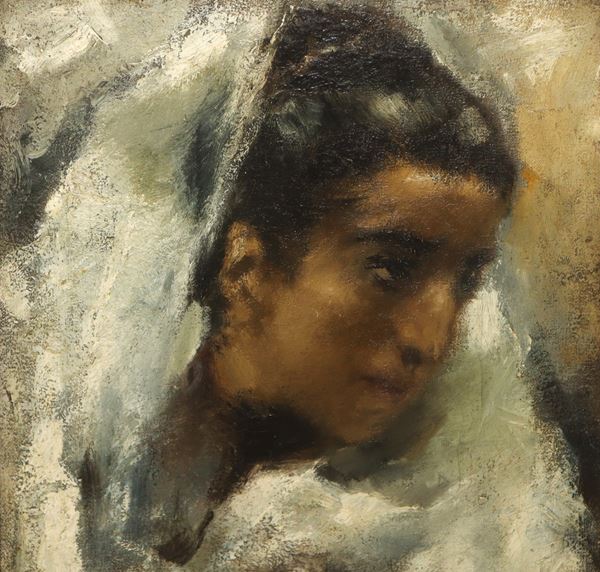 Il dipinto è firmato in basso a sinistra dal noto pittore Gaetano Previati esponente del movimento divisionista. La sua formazione ebbe luogo principalmente a Milano, ambiente nel quale assimilò le influenze dai maestri del Romanticismo e del Realismo. Il soggetto è un volto di donna raffigurato di profilo avvolto in una nube bianca, caratterizzato da pennellate filamentose e dense.