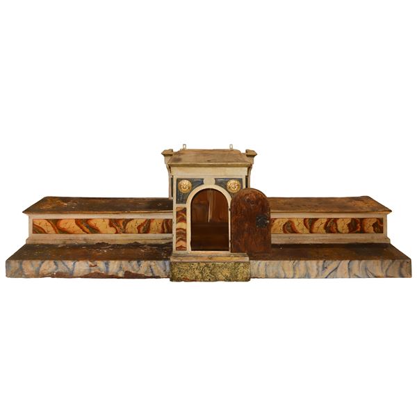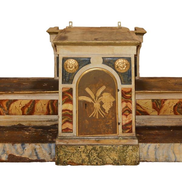 Tabernacolo con base laccata e porta in legno dorata con foglia, Sicilia XVIII secolo