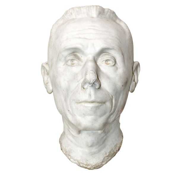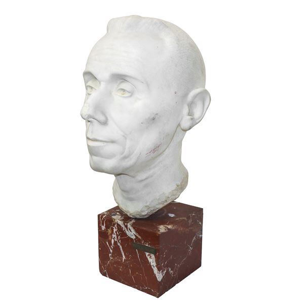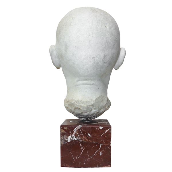 Testa di uomo, scultura in marmo bianco con basse in marmo rosso