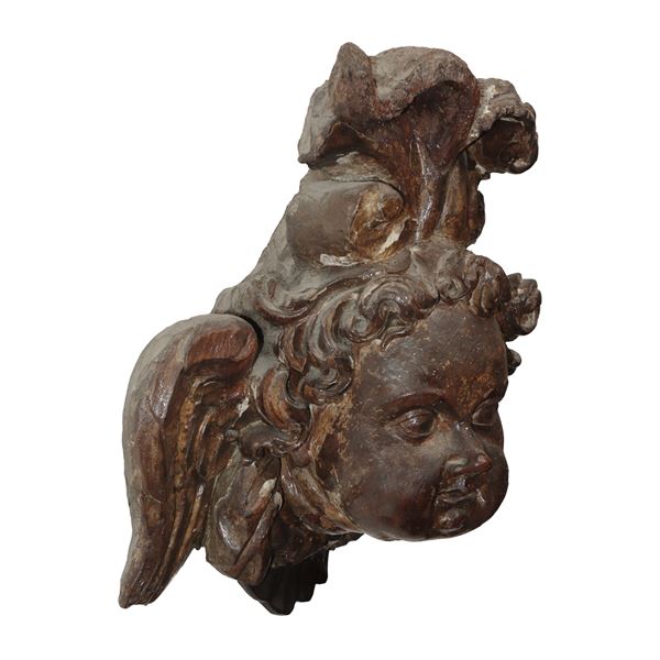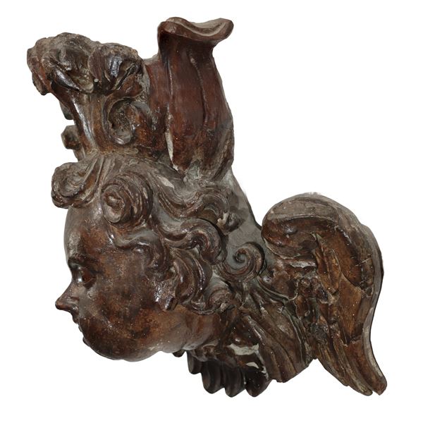 Testa di zefiro scolpito e intagliato su legno, XVII Secolo