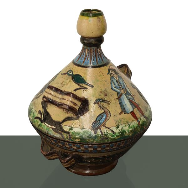 Vaso in Ceramica di Montopoli Val D'Arno policroma con personaggi e animali