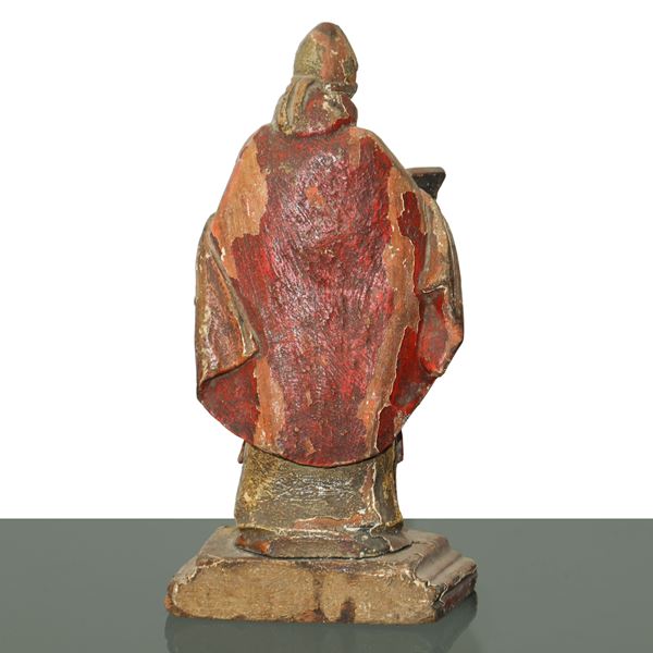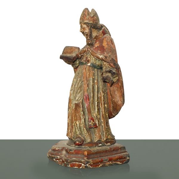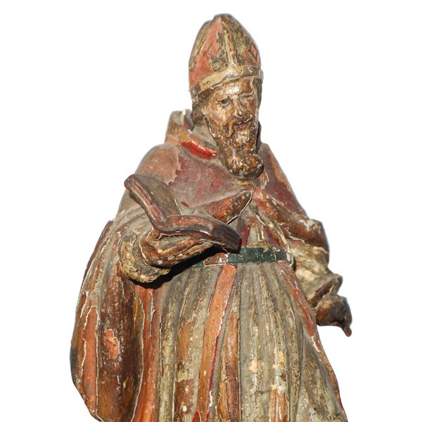 Vescovo con libro, scultura lignea dorata e policroma, XVIII secolo