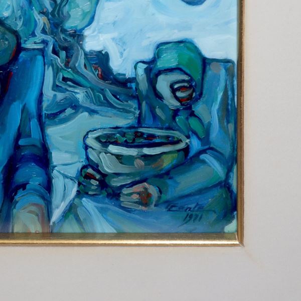 Firmato e datato sul fronte in basso a destra, firma titolo tecnica e timbro dell'artista al retro