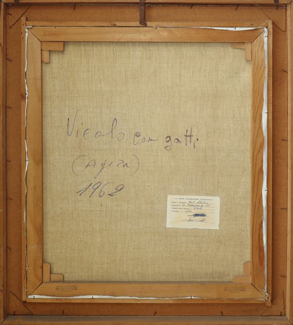 Firmato in basso a destra. Al retro titolato e datato. Etichetta Mostra Contemporanea di Aci Castello