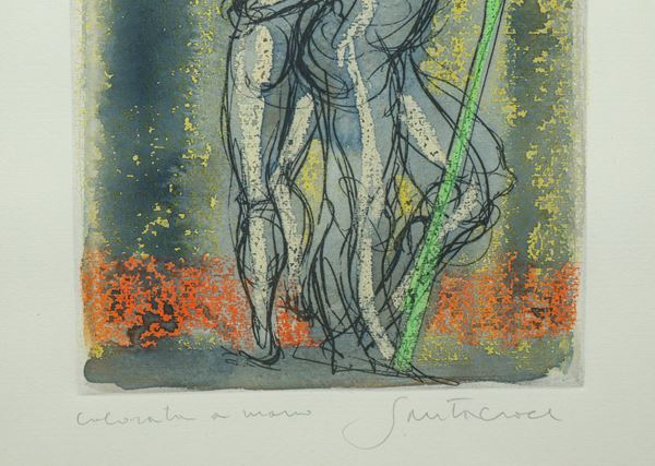 Acquaforte colorata a mano. Firmato in basso a destra.