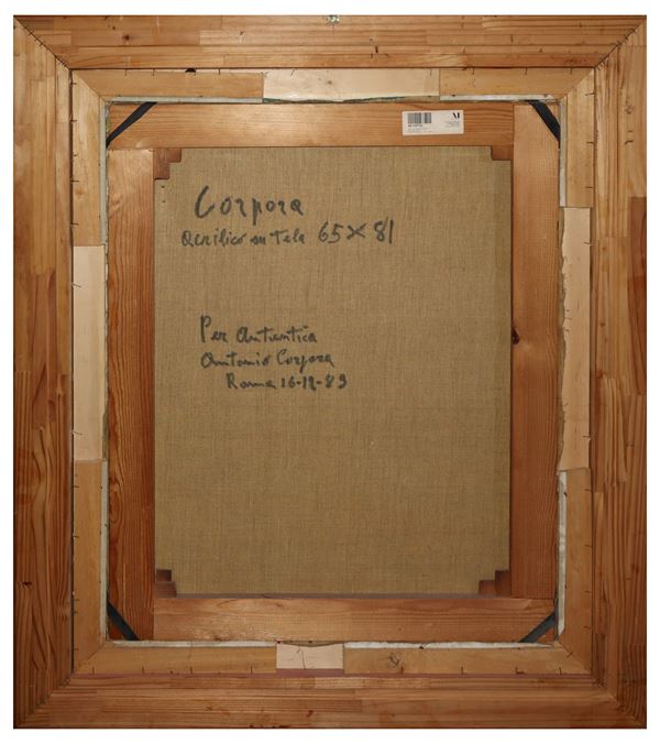 Autentica del pittore al retro, Roma 16.12.1989. Autentica dell'autore su fotografia del 12 aprile 1993.
