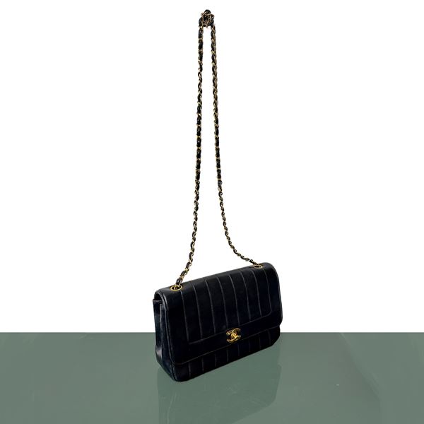 Borsa Chanel modello Timeless in pelle nera con catena e metalleria dorata