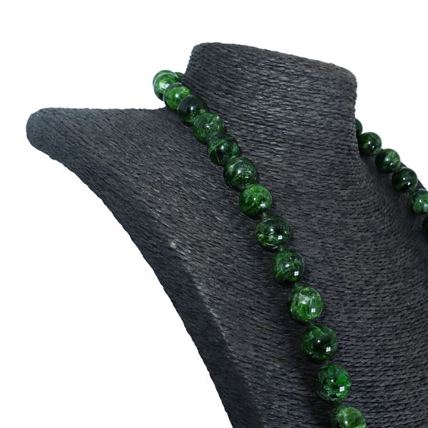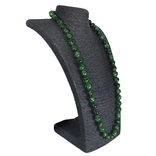 Collana ad un filo con sfere sfaccettate in granato verde