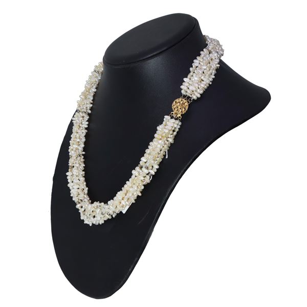 Collana con 6 fili di perle di fiume, susta in silver