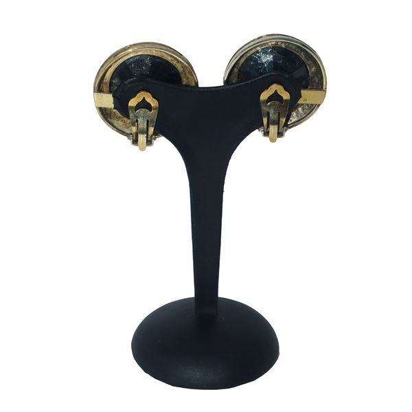 Orecchini a clip circolari in metallo dorato con grande pietra blu al centro