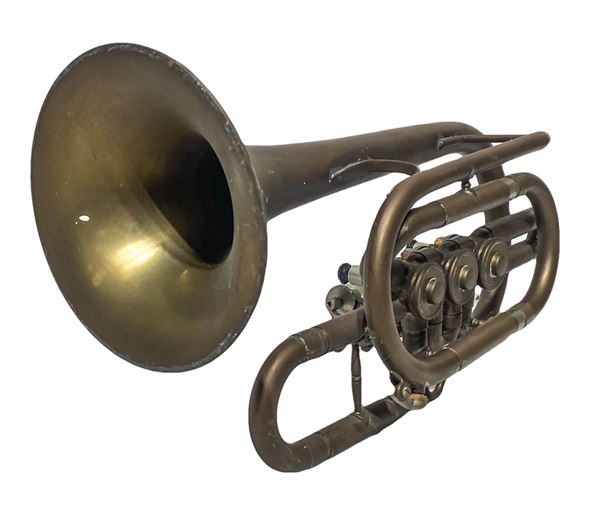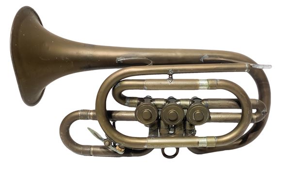 Antica tromba in ottone a tre pistoni