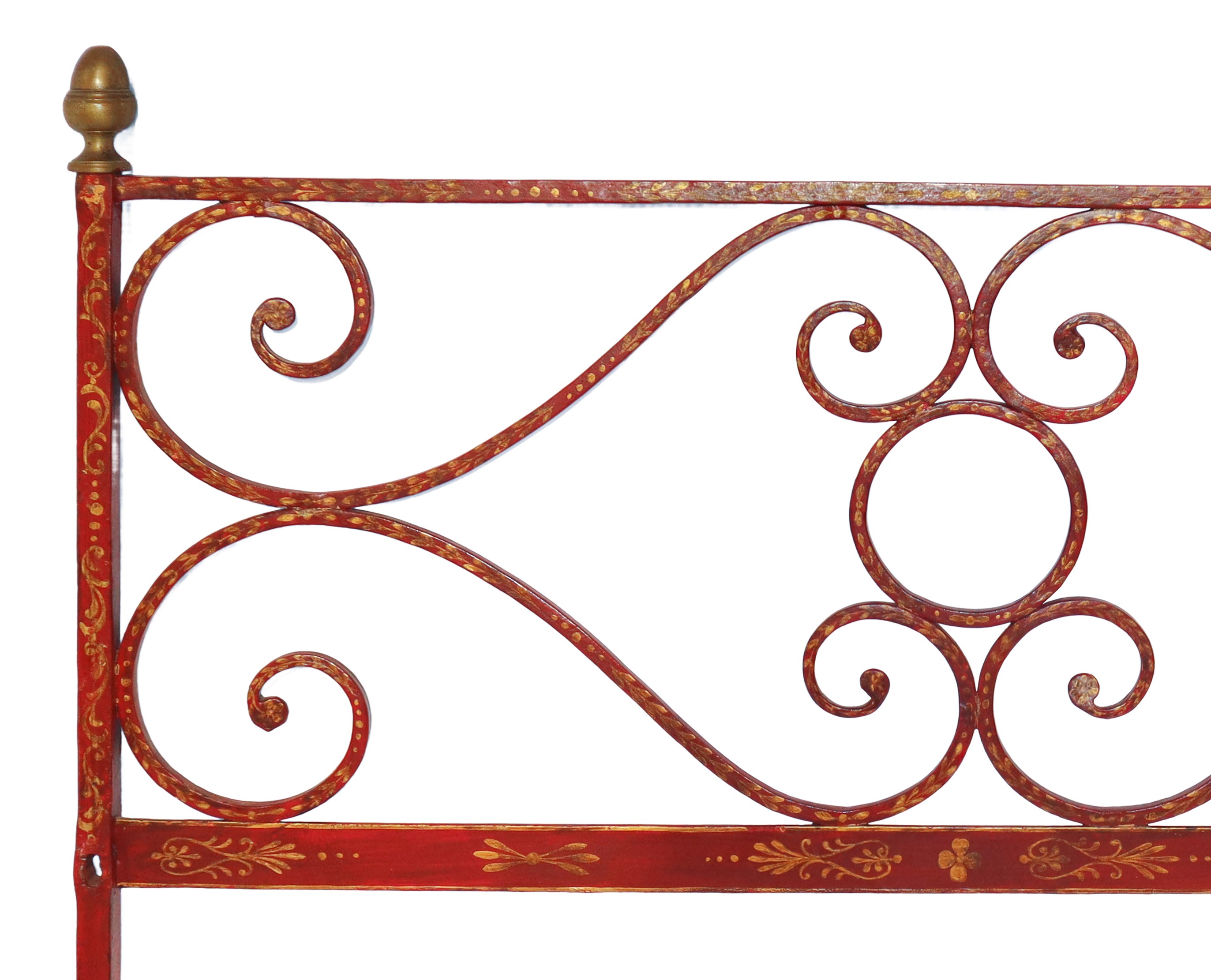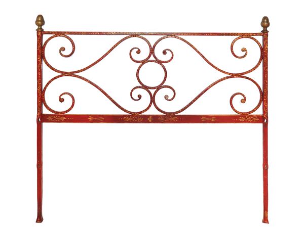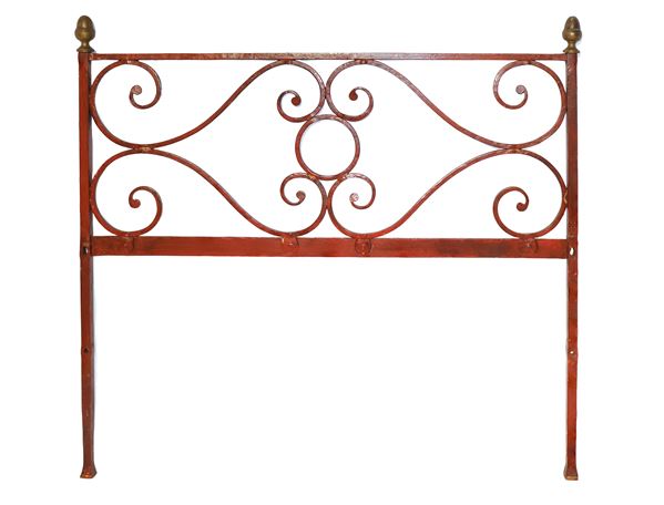Letto a una piazza in ferro codato laccato con pigne in ottone all'estremità della testiera e pediera, fine XIX secolo