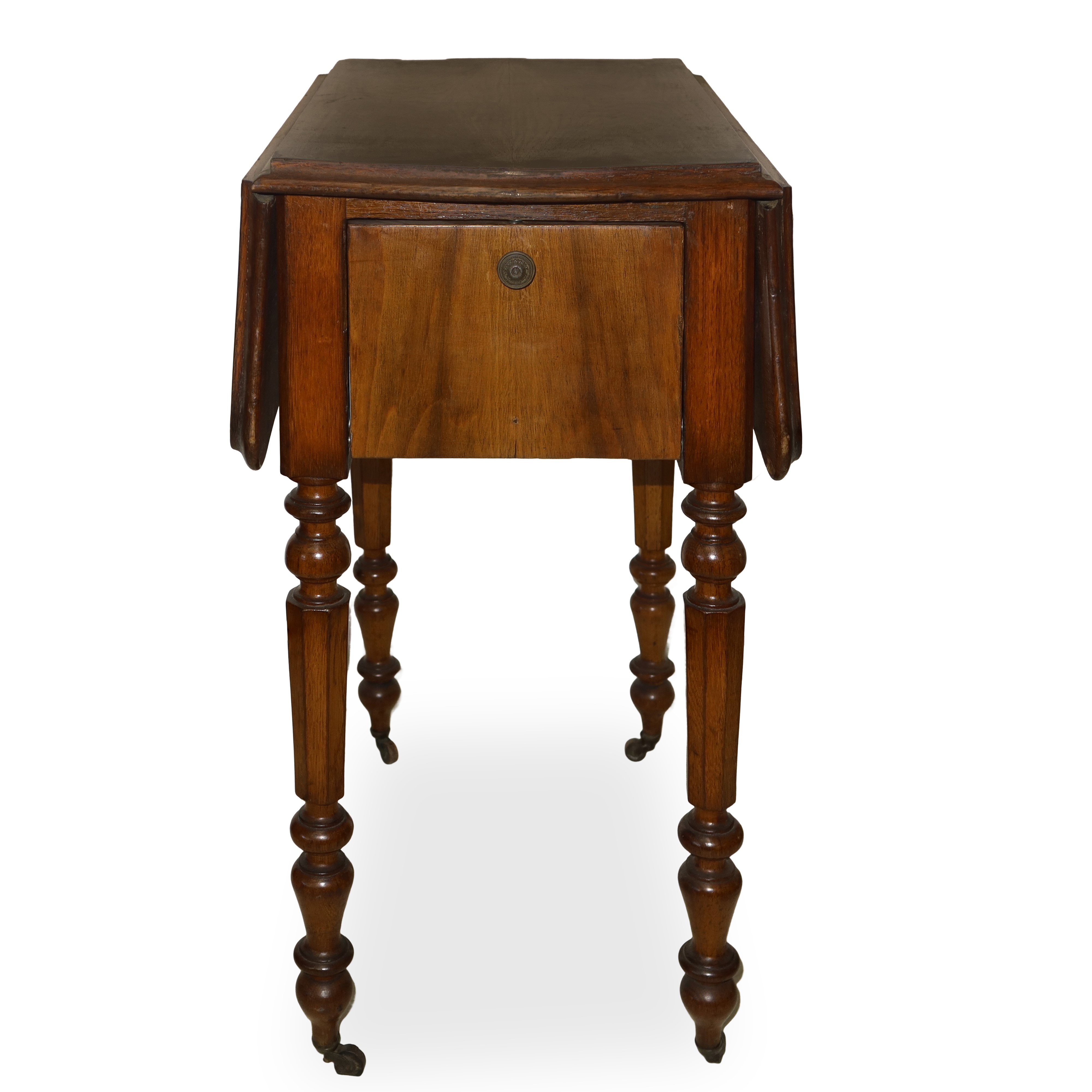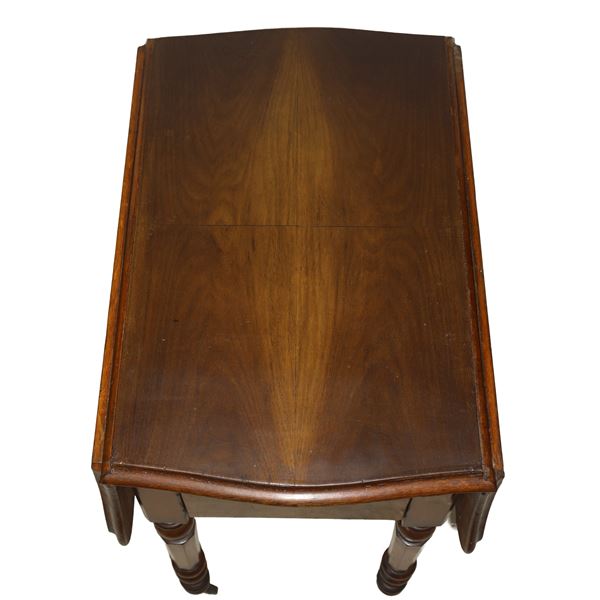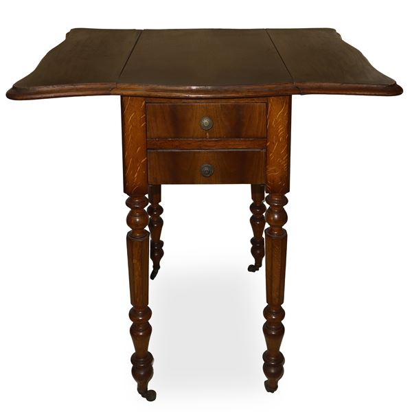 Piccolo tavolo a bandelli in legno di noce con cassetto, XIX secolo