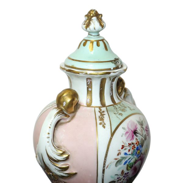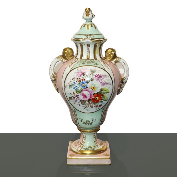 Vaso poutiche policromo a motivi floreali, inizi XX secolo
