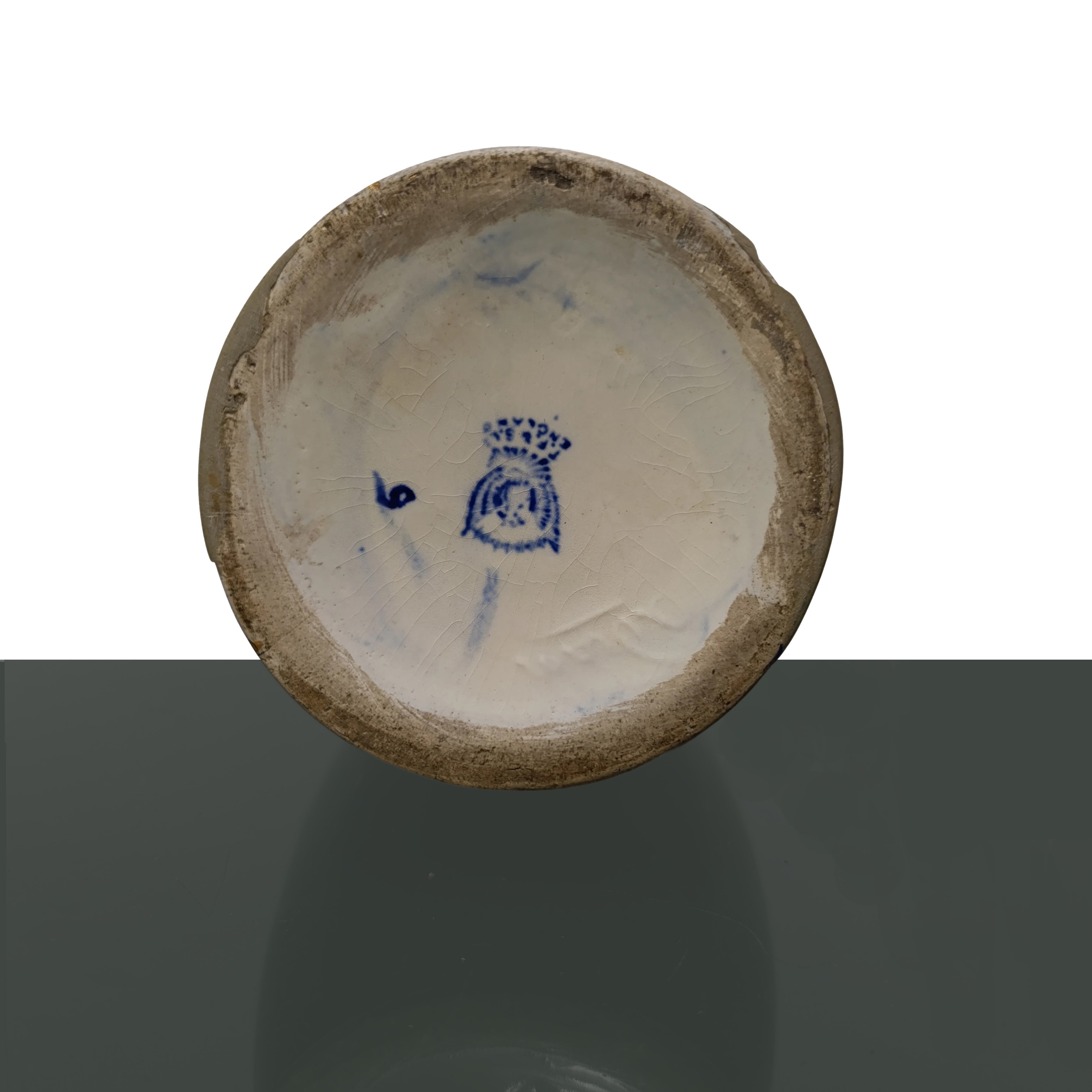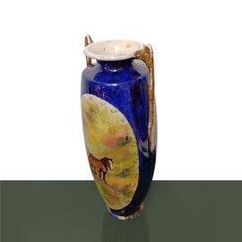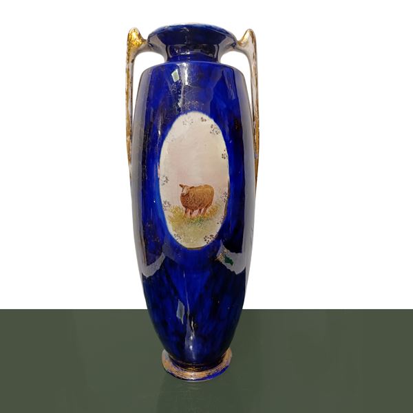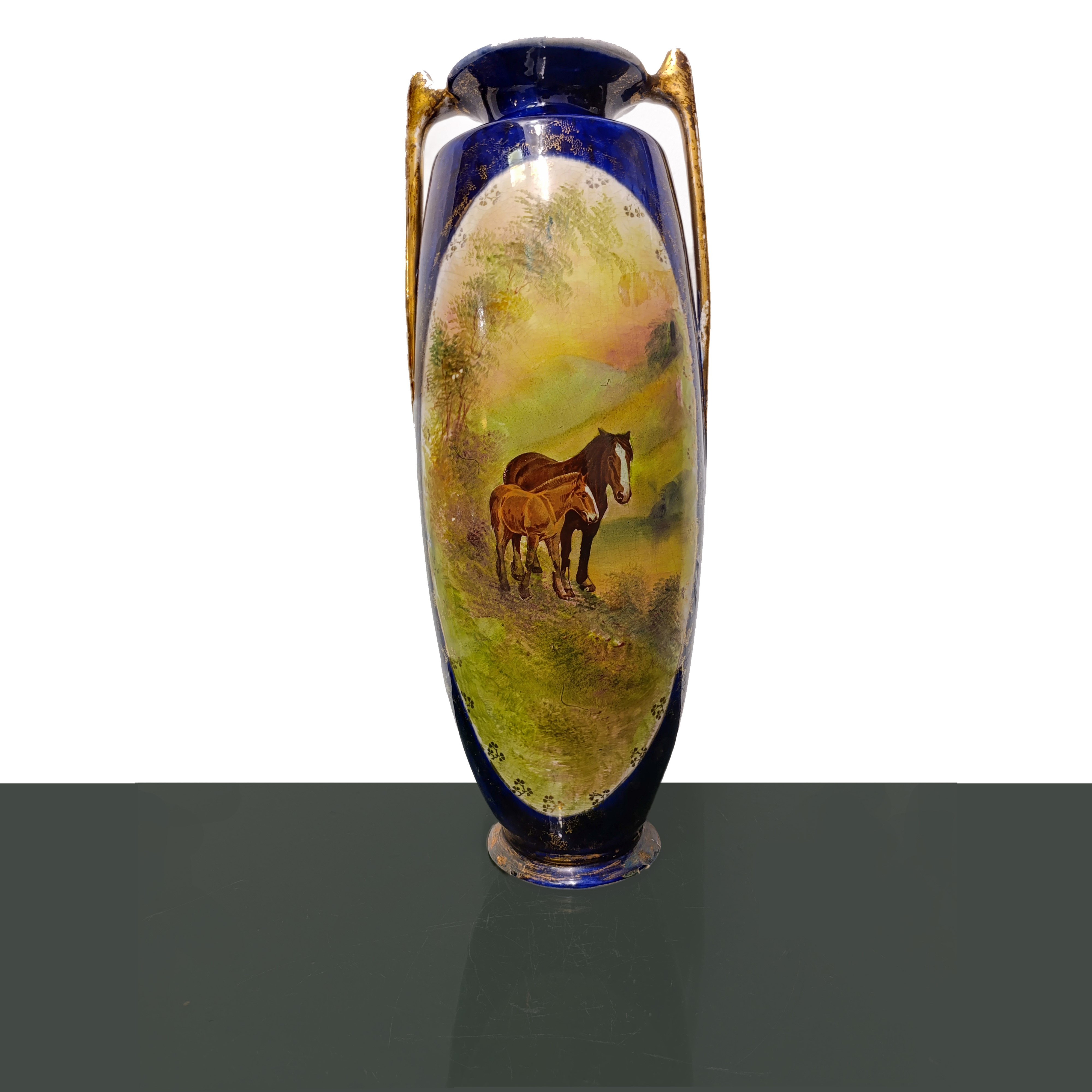 Vaso blu in porcellana inglese con medaglione centrale con cavalli