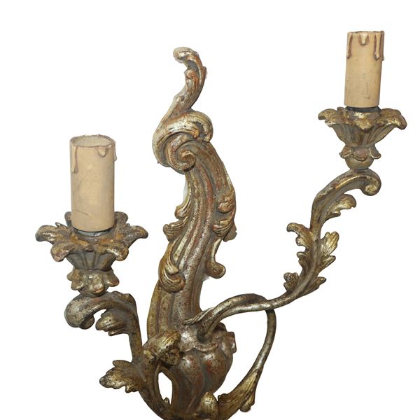 Applique a due luci in legno dorato, XIX sec.