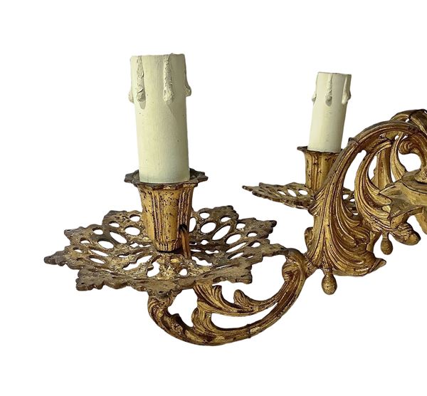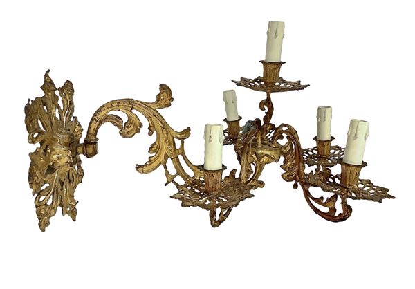 Coppia di applique a cinque luci in bronzo dorato, XIX secolo