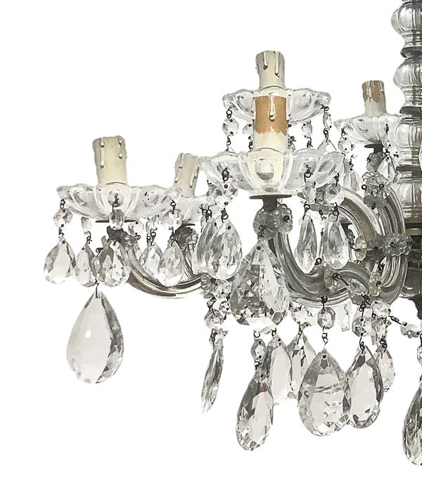 Lampadario a sospensione dodici luci in vetro di Boemia, Anni '30 - '40